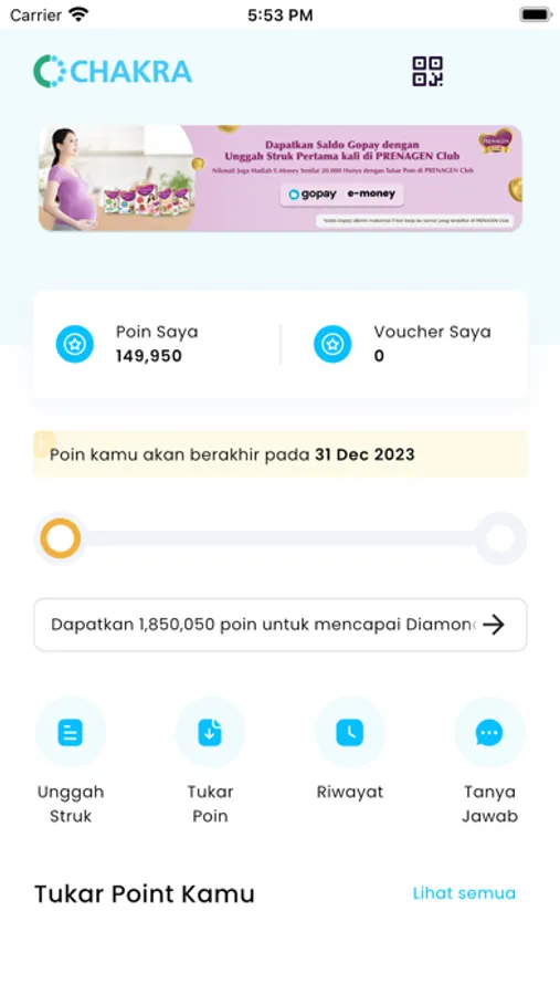 CHAKRA Rewards adalah platform loyalitas pelanggan yang terintegrasi. Dengan menjadi anggota CHAKRA Rewards, Anda akan terhubung dengan berbagai program keanggotaan mulai dari produk kesehatan dan nutrisi, toko ritel, klinik, rumah sakit, hingga program karyawan.