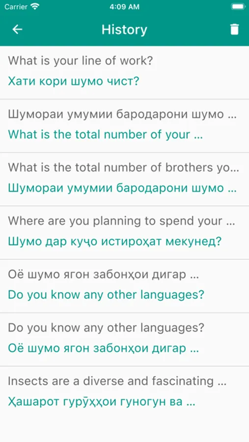 Additionally, the English Tajik Translator app stores your translation history, allowing you to quickly refer back to previous translations without having to re-translate the same text. This is especially useful for phrases or sentences that you may need to use frequently.
