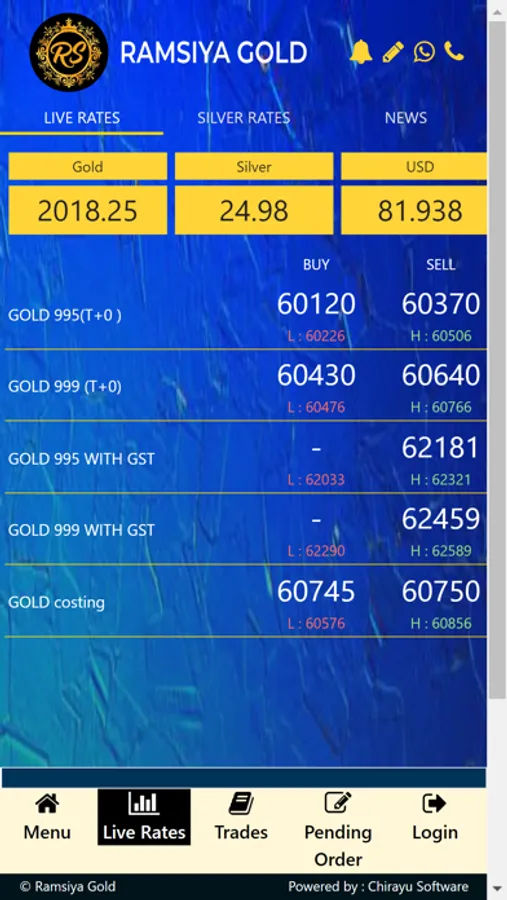 Our app shows the fastest updated LIVE RATES of gold.