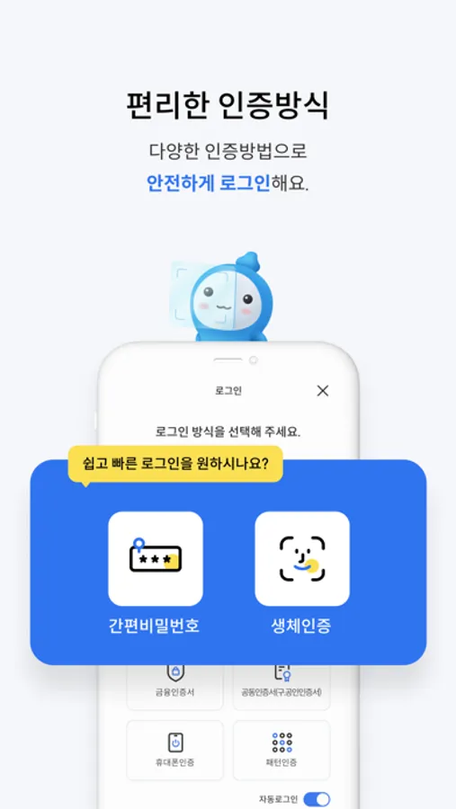 다양한 인증수단과 서비스를 통해 쉽고 빠른 금융거래를 안전하게 제공합니다.