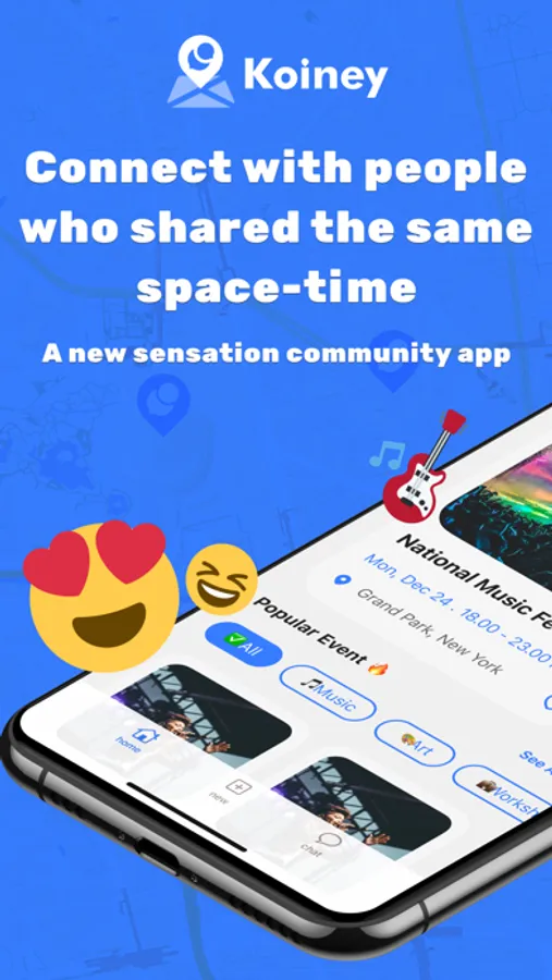 Koiney is the next-generation community app that connects you with people who share the same place and time. By connecting with those who share the same time and space (same place at the same time) through online chats, Koiney enhances your offline experiences and serves as a community-building tool.