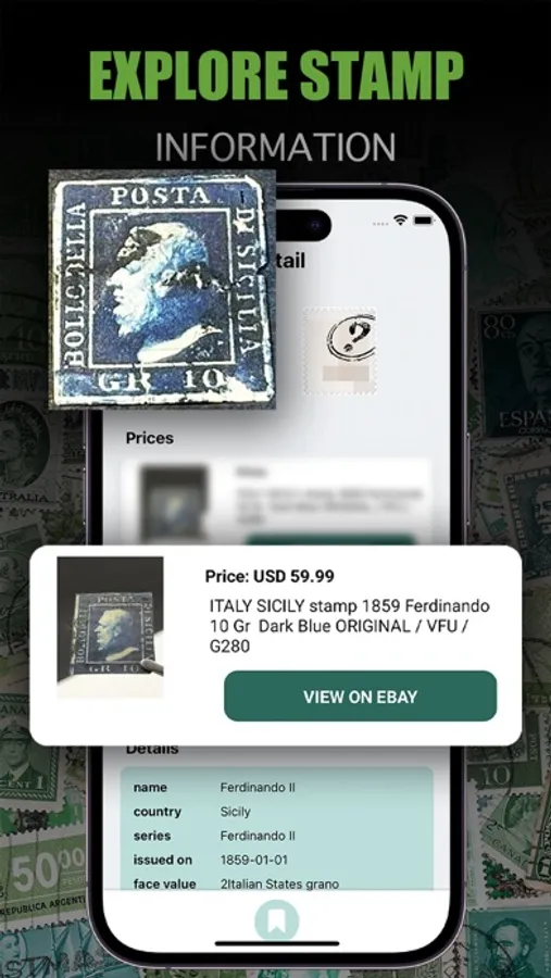 Get detailed information about each stamp: The app provides detailed information about each stamp, including its country of origin, issue date, denomination, and value.