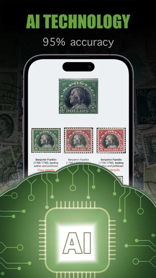 Identify stamps from all over the world: Simply take a photo of the stamp with your phone's camera and the app will quickly identify it.