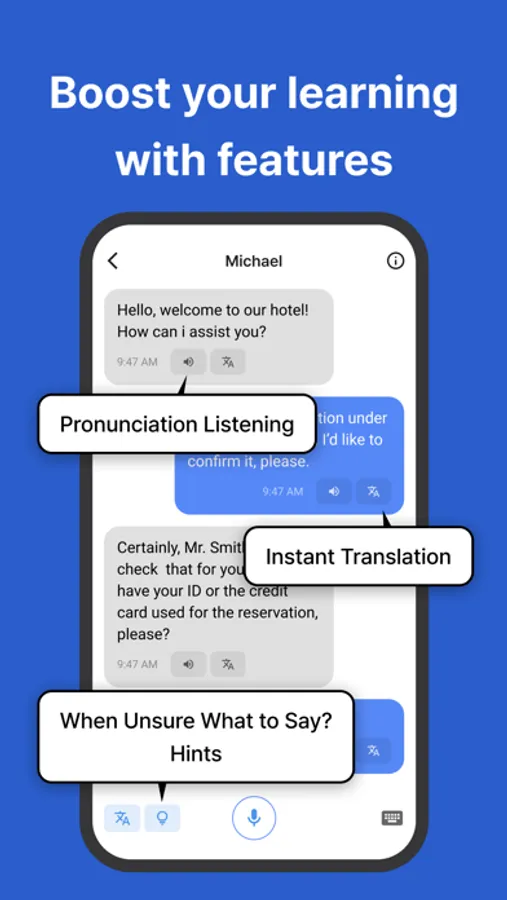 - When you're unsure what to say, press the hint button to receive helpful suggestions based on the situation.
