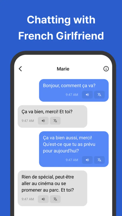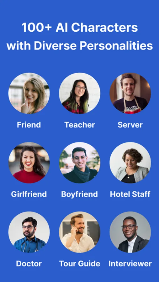 - Set various situations for the AI, such as a girlfriend, boyfriend, airport staff, teacher, restaurant worker, doctor, or travel guide.