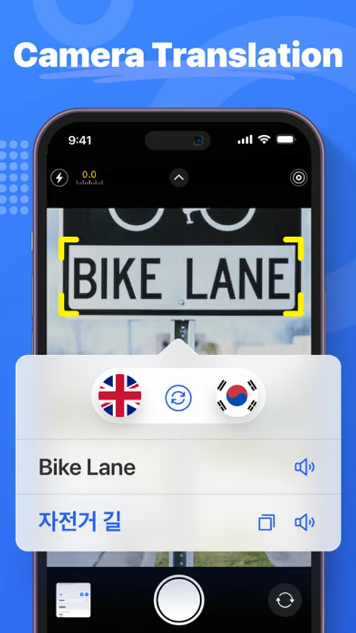 Translate any pic or text using your camera. Easily translate menus, signs, or any paper document.