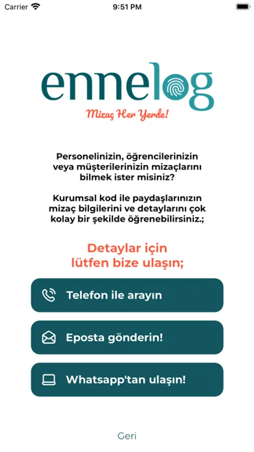 - Kurumlar İçin Özel: İş dünyasında mizaç analizi muhataplarınızı anlama, işe alım ve ekip oluşturma süreçlerini geliştirmenize yardımcı olur. Kurumlar için özel kurum kodları ile çalışanların mizaç bilgilerini görüntüleyebilirsiniz.