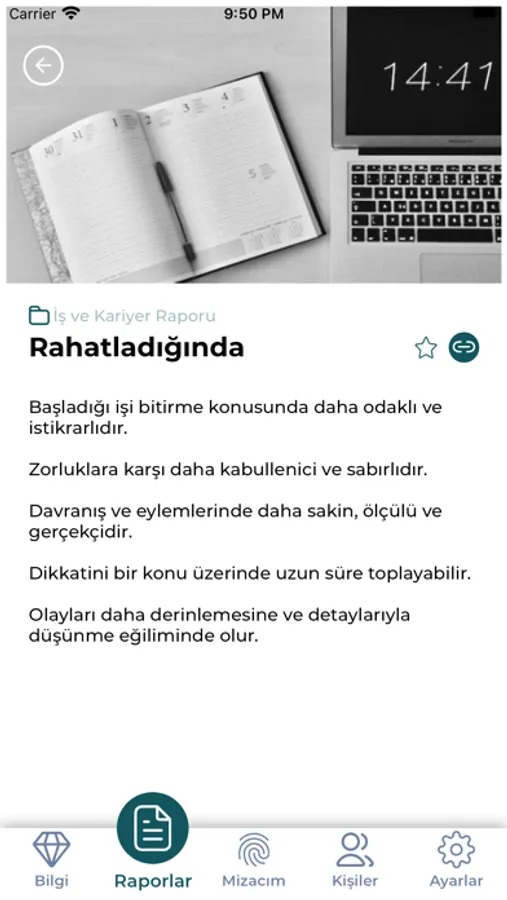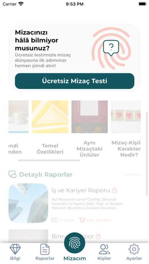 - Ücretsiz Özet Rapor: Kişisel mizaç analizinize dayalı olarak size özel, ücretsiz bir özet rapor sunuyoruz. Bu rapor, hangi özelliklerin sizi tanımladığını anlamanıza yardımcı olacak.