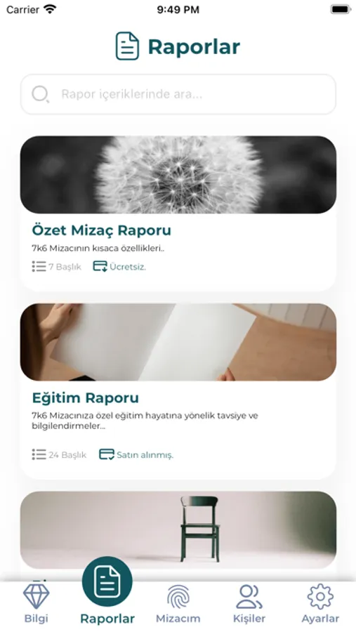 - Detaylı Raporlar: İlgilendiğiniz konularda daha derinlemesine bilgi almak isterseniz, farklı alanlarda detaylı raporlar satın alabilirsiniz. Bu raporların içeriğindeki detaylı bilgilendirmeler kendinizi anlamanızda ve kişisel gelişiminizde size yol gösterici niteliktedir.