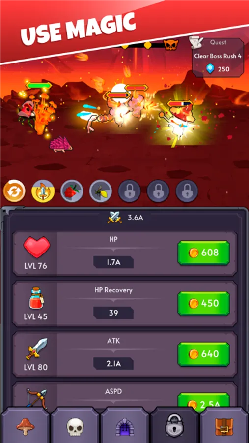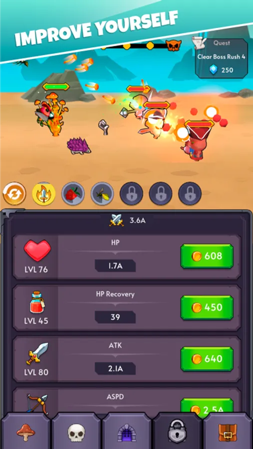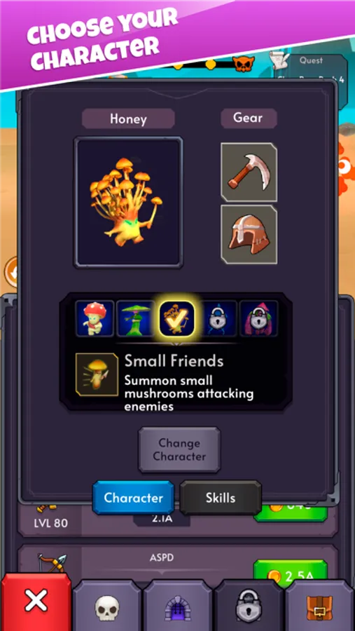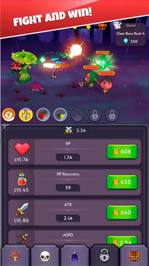 Upgrade your Mushroom infinitely: level up, unlock unique skills, and become the most powerful creature.