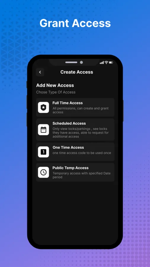 Multi-User Accesses for your Assets or Parking Spaces. Create Scheduled, Full Time, Temporary or One-Time Accesses.