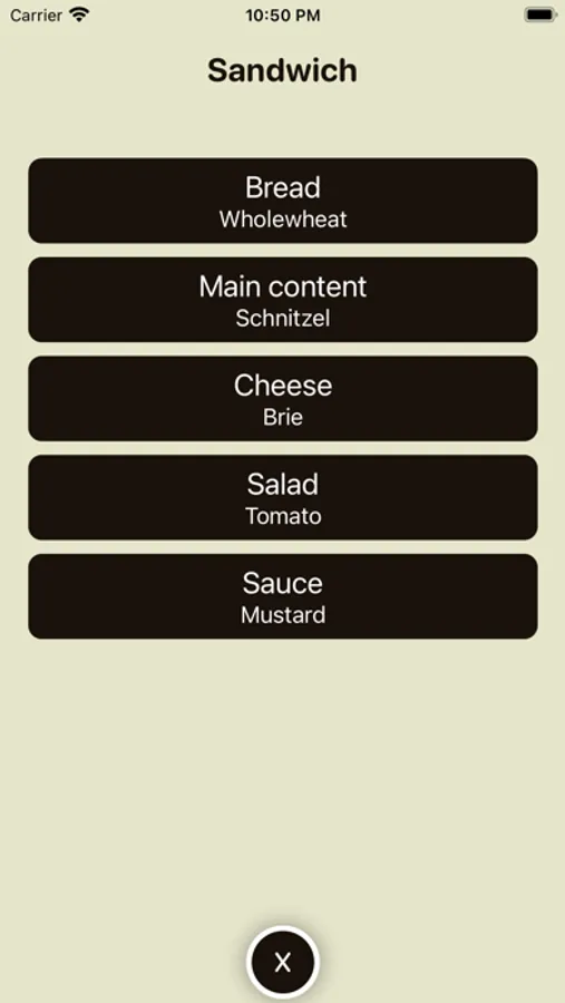for each component (bread, main content, salad, and sauce) one option will be randomly picked