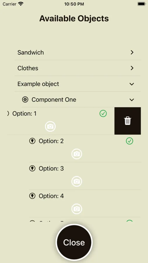 - Create an object with components, and for each component declare possible options (may contain an image)