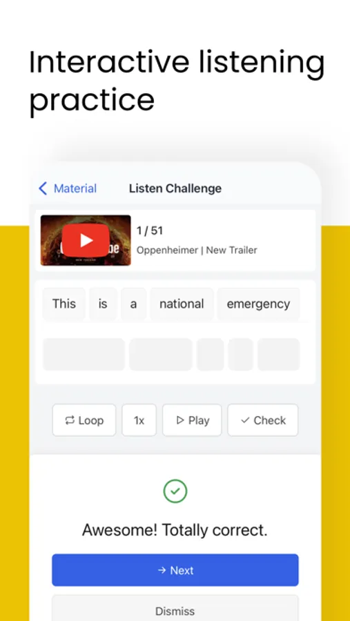 • Learn with YouTube: With OneLang, you can leverage the engaging content of YouTube videos to enhance your language skills. Select videos that spark your interest and immerse yourself in a language-rich environment while enjoying the learning process.