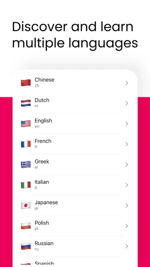 • Multilingual Support: OneLang caters to language enthusiasts worldwide. Expand your linguistic horizons with Dutch, English, French, Greek, Italian, Japanese, Polish, Russian, and Spanish. Whether you're a beginner or an advanced learner, OneLang provides a language learning path tailored to your level.