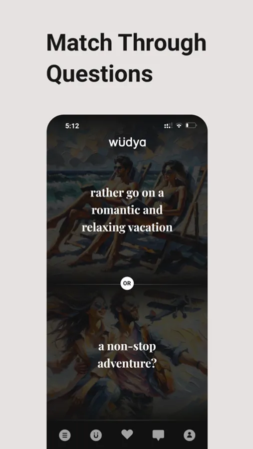 wüdya isn’t here to add to your dating burnout—we’re here to save you from it. We know, we know: you've heard it before. But this time, we’re serving something a little different. wüdya is where the awkward small talk dies, personality shines, and matches feel less like swiping through a catalogue and more like, well, actual humans.