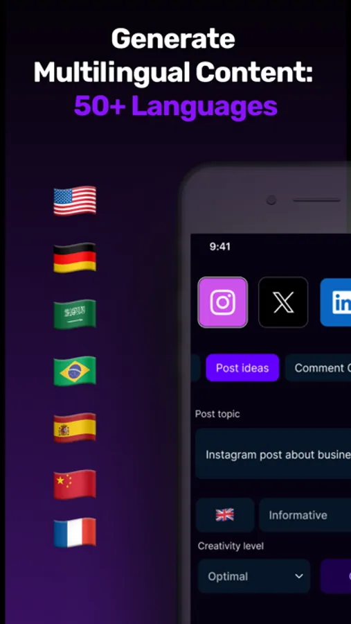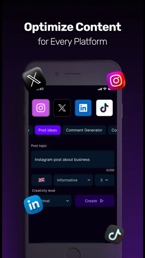 We trained the latest advanced models with ChatGPT API & GPT-4 to streamline your content generation process, helping you save time, effort, and resources. Our app removes the cumbersome aspects of your content generation process, enabling you to craft unique, engaging posts tailored to your brand and target audience. Be it Instagram, LinkedIn, TikTok, or Twitter (now called X), our dynamic tools, specifically sculpted for each platform, streamline your social media planning and posting.