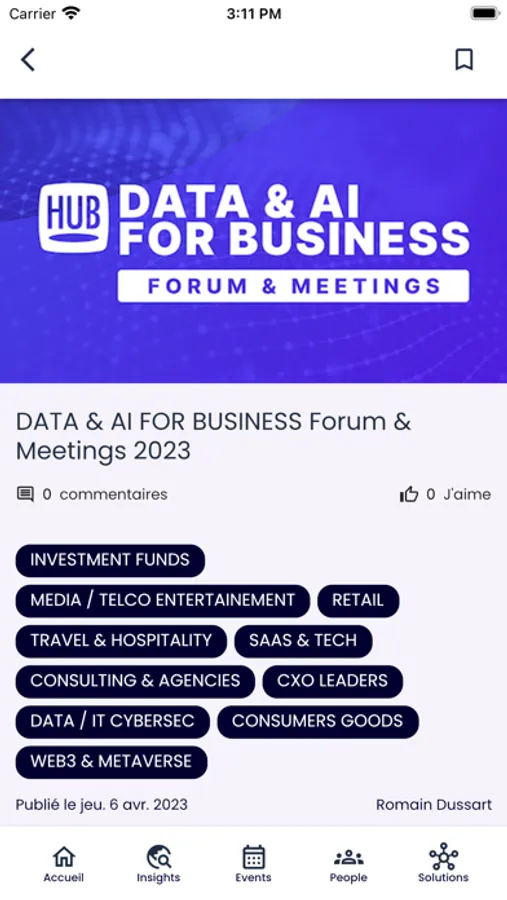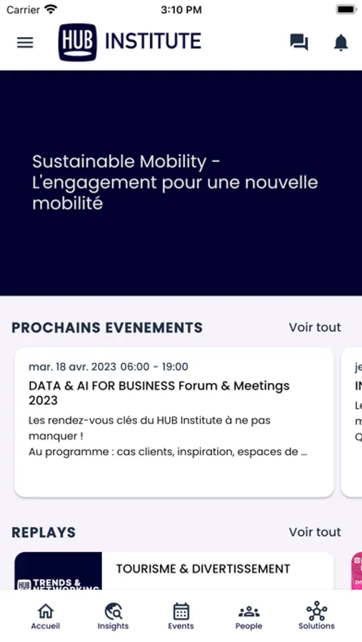 - Événements : Inscrivez-vous aux prochains événements, consultez les replays en vidéo