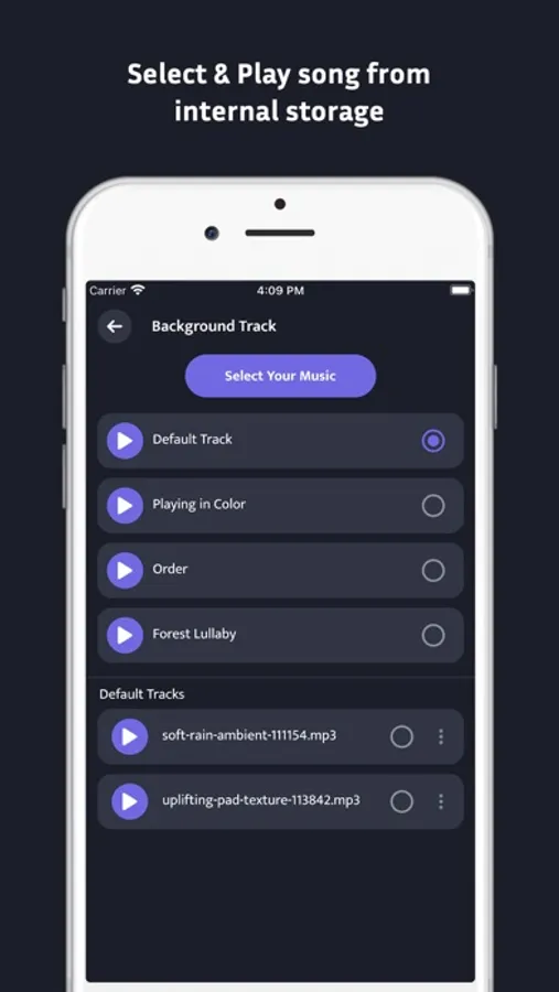 - Affirmation player with soothing background and music for powerful manifestation. You can add your own music for Affirmation player.