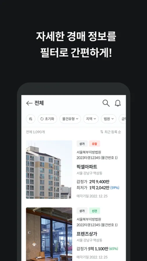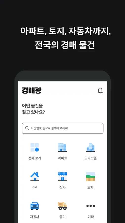 전국의 아파트, 오피스텔, 자동차, 토지 경매 정보까지 한눈에 확인하고