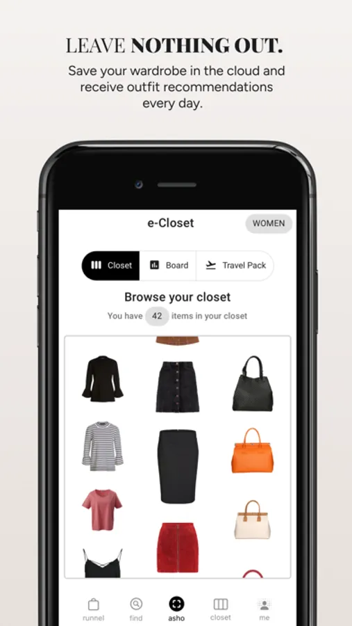 • Prepare to be amazed by the power of asho. With asho, you can leave nothing out when it comes to your wardrobe. Our app allows you to save your entire wardrobe in the cloud, ensuring that you never forget a single item. Plus, receive daily outfit recommendations tailored to your unique style and preferences. Embrace the convenience of having a personal stylist right at your fingertips.