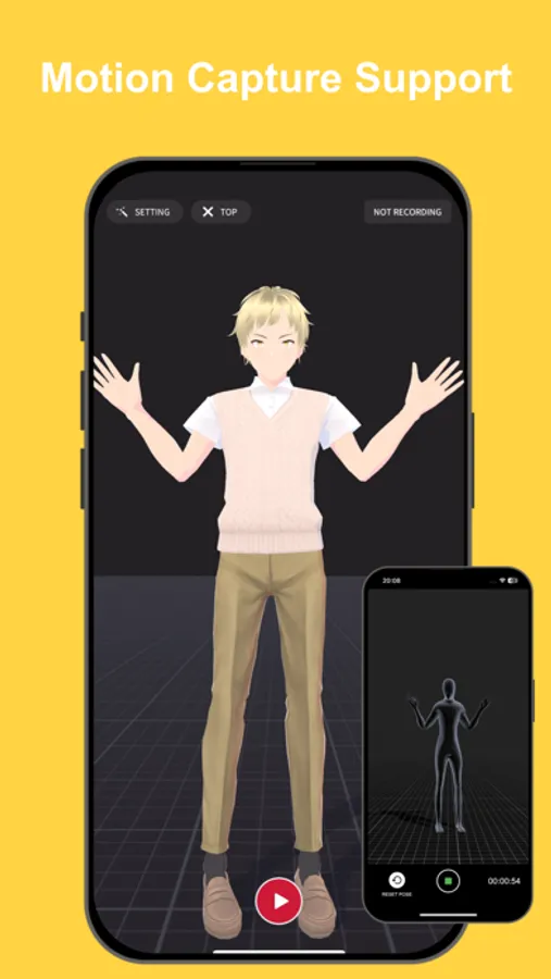 You can capture motion by using camera and using mocopi. Motion data can be saved and managed. If you prepare multiple mocopi, you can record data of multiple people at the same time. (up to 3 units)