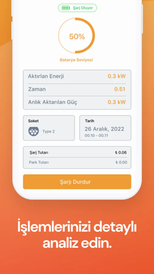 Şarj işleminiz sona erdiğinde, uygulamaya kaydettiğiniz kredi kartı üzerinden sorunsuz şekilde ödeme gerçekleştirebilirsiniz.