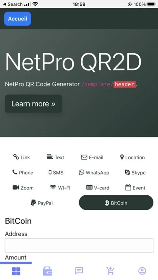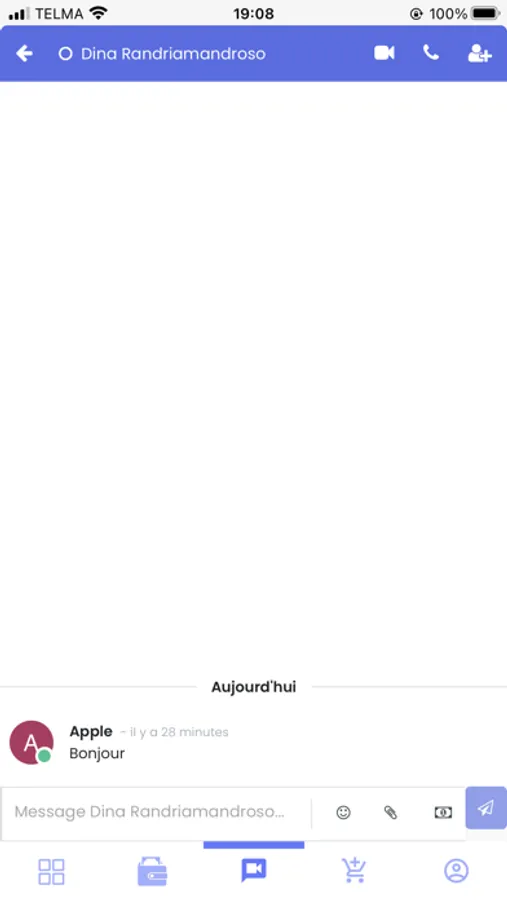 Depuis l'App pour discuter en message ou scanner la carte 2D/QR Code 2D ou scan de visage pour transfert d'argent ou paiement: