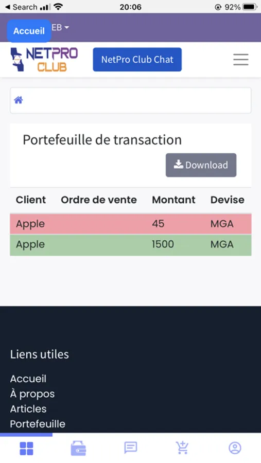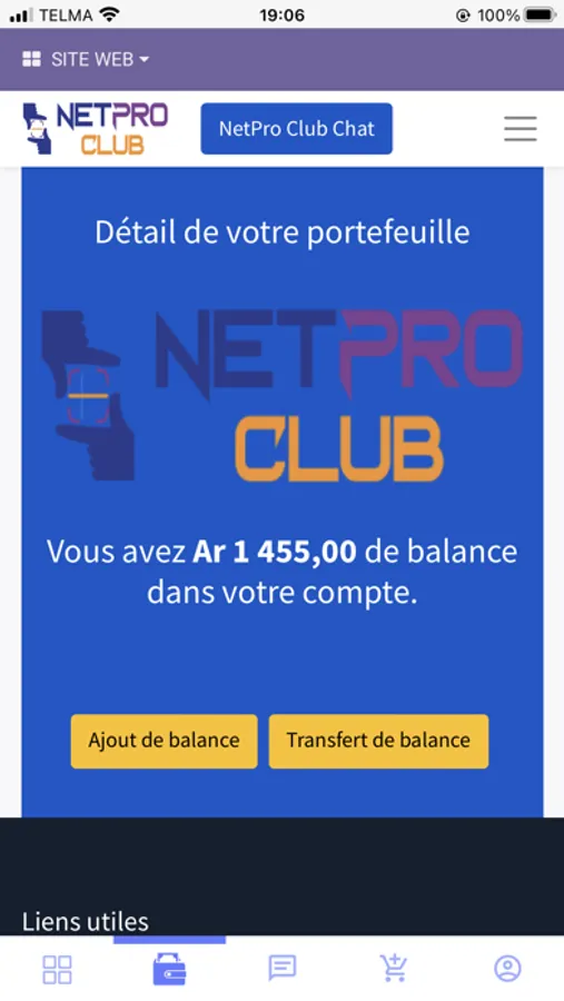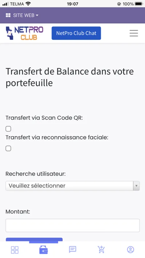 - transfert de monnaies ou jetons "tokens" entre membre en scannant la carte 2D NetPro Club ou directement sur le plateforme de chatroom de l'app