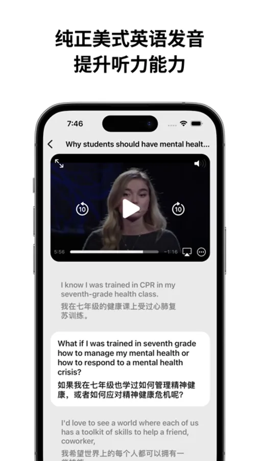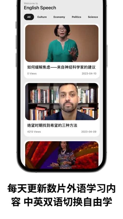 1. Update several episodes of foreign language learning every day, switch between Chinese and English, and learn freely.