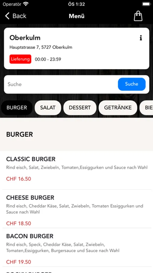 * Sehen Sie sich unser Menü an