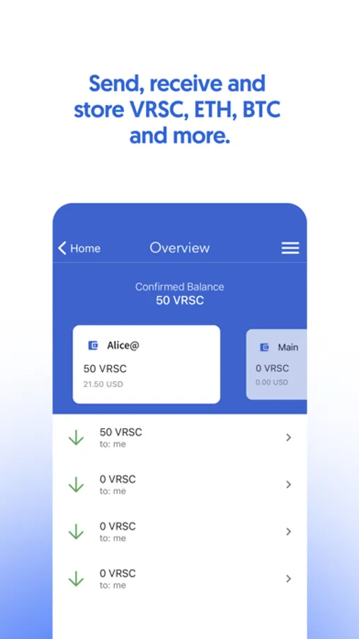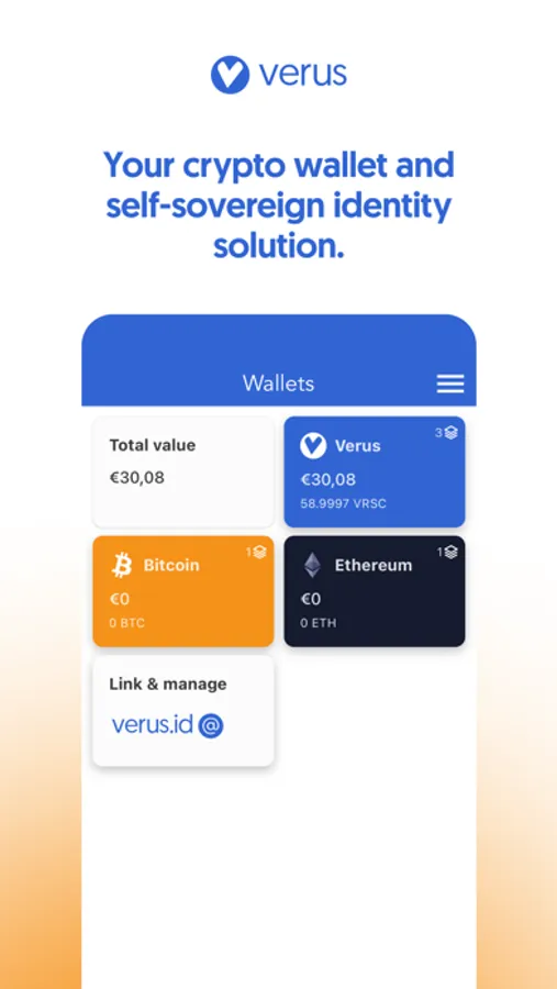 Verus Mobile is a robust, safe, and secure multi-currency wallet for Bitcoin, Ethereum, Verus, and various other cryptocurrencies across multiple networks. Effortlessly send, receive, and store Verus (VRSC) and other currencies with the highest level of security. Embrace the VerusID identity protocol to bypass passwords and log in to applications using your self-sovereign identity. Experience the power of Verus Mobile!