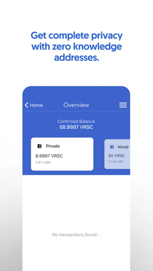 Verus Mobile's self-sovereign wallet prioritizes your privacy and never tracks your purchases, transactions, messages, or any other usage. You alone control and have access to your cryptocurrency assets, provided you keep your private keys confidential. Secure your keys and assets on your device using Face ID, Touch ID, or traditional passwords.