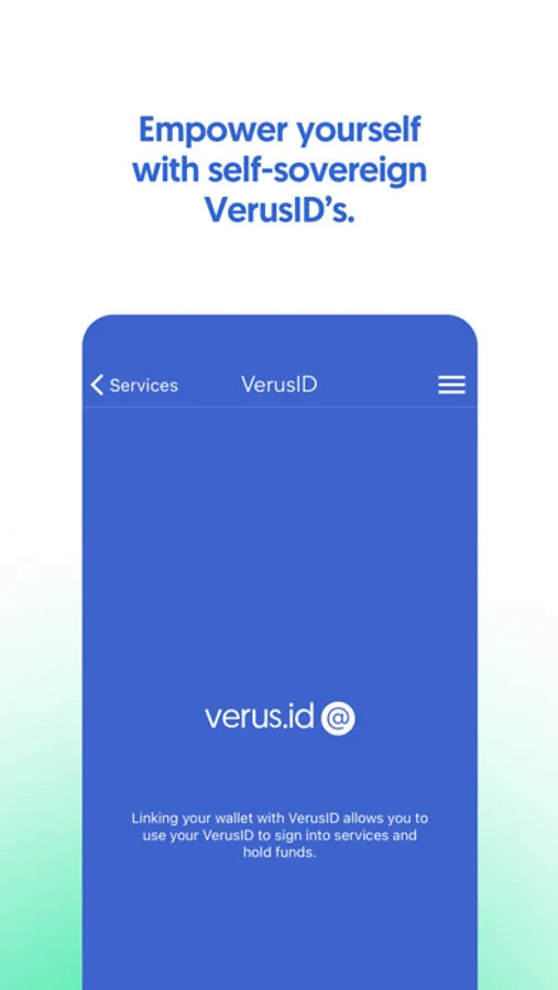 Empower yourself with self-sovereign VerusID's that enable more secure and user-friendly name addresses for sending, receiving, and storing assets. Seamlessly sign into services without compromising your privacy.