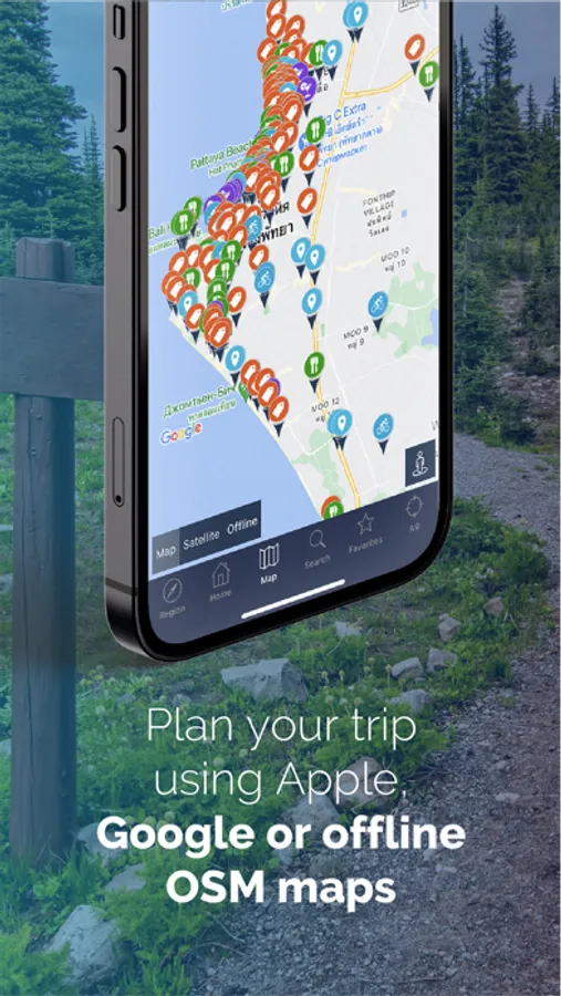 - Add to and edit your own findings on the 3 available maps (Apple, Google and offline OSM). The POIs you have pinned are automatically sent to iCloud, meaning that your discoveries are saved and shared between all of your iOS devices.