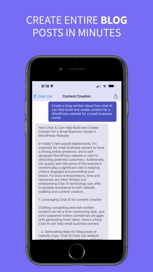 SEO assistance is also included in the app. Add some content, and chat with app on optimizing it for SEO.