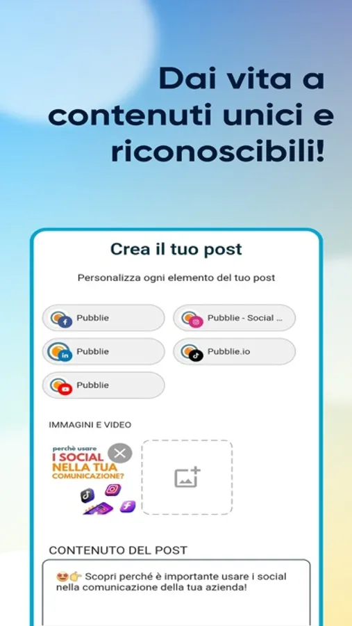 Crea e pubblica con facilità sui tuoi canali social.