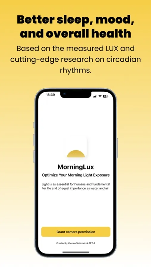 Discover the transformative power of morning light with MorningLux, a user-friendly app that helps you optimize your morning light exposure for enhanced health and well-being. Harnessing the latest scientific research, MorningLux measures the LUX intensity of your environment and offers personalized recommendations for the ideal light exposure to support your circadian rhythm.