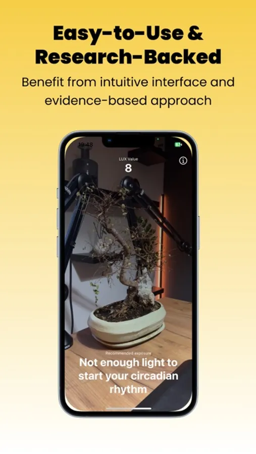 * Tailored Recommendations: Based on the measured LUX and state-of-the-art research, MorningLux calculates your ideal exposure time for the optimal morning light, leading to improved sleep, mood, and overall health.