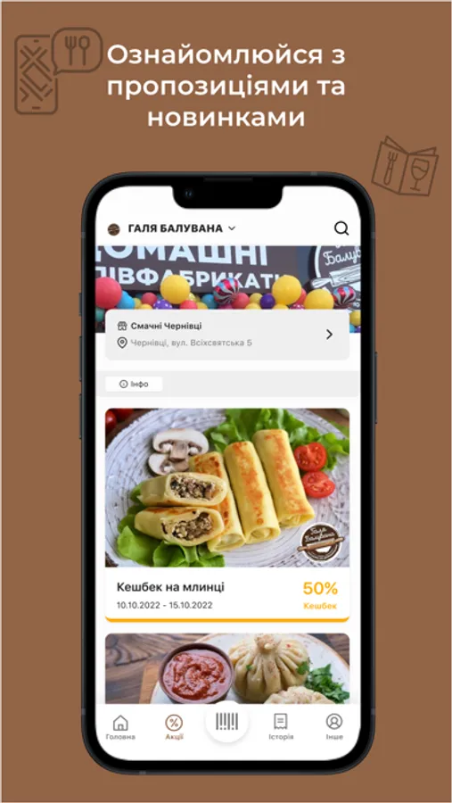 By downloading Смачні Чернівці, you become a part of a unique loyalty program.