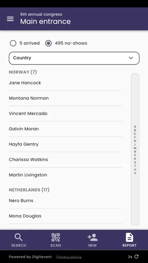 - Check-in guests by searching, scanning badges/QR codes, or drawing signatures