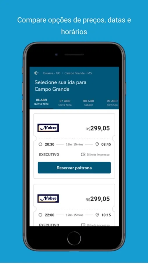 Aplicativo da operadora Viação Nobre para venda de passagens rodoviárias.