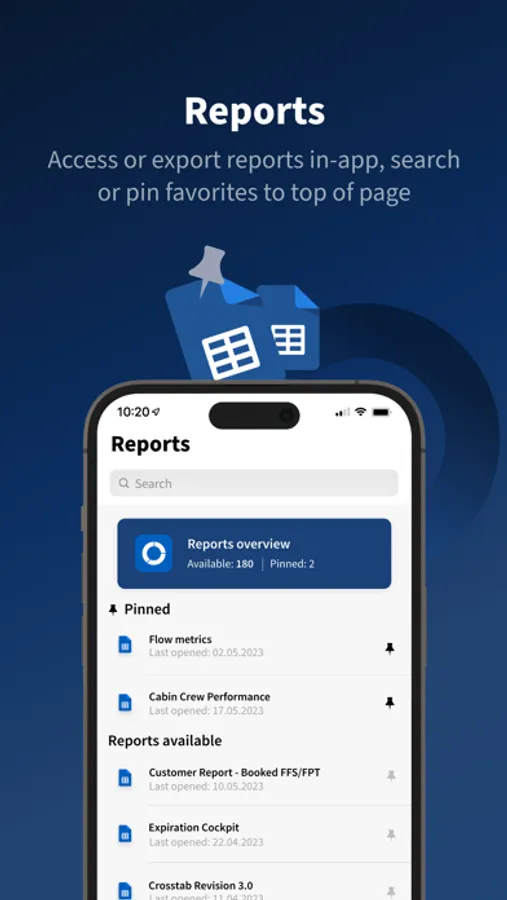 You can access and export your MINT reports in various formats. Additionally, you can search through all available reports or pin your most-used to the top of the page.