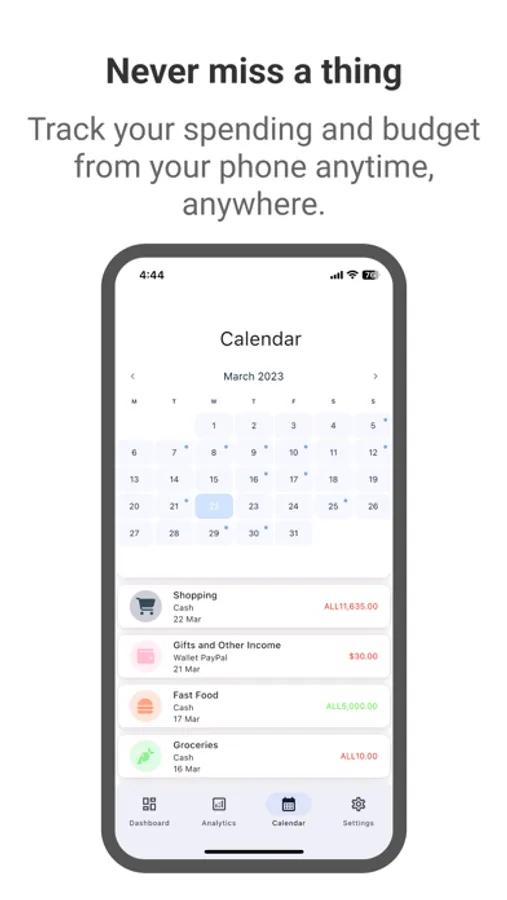 Our app offers a range of features designed to simplify your financial life. Create wallets, track your spending across each one, and gain insights into your spending habits with detailed statistics and visualizations. With Finzio, you can identify areas where you're overspending and adjust your budget accordingly, saving you money and putting you on the path to financial success.