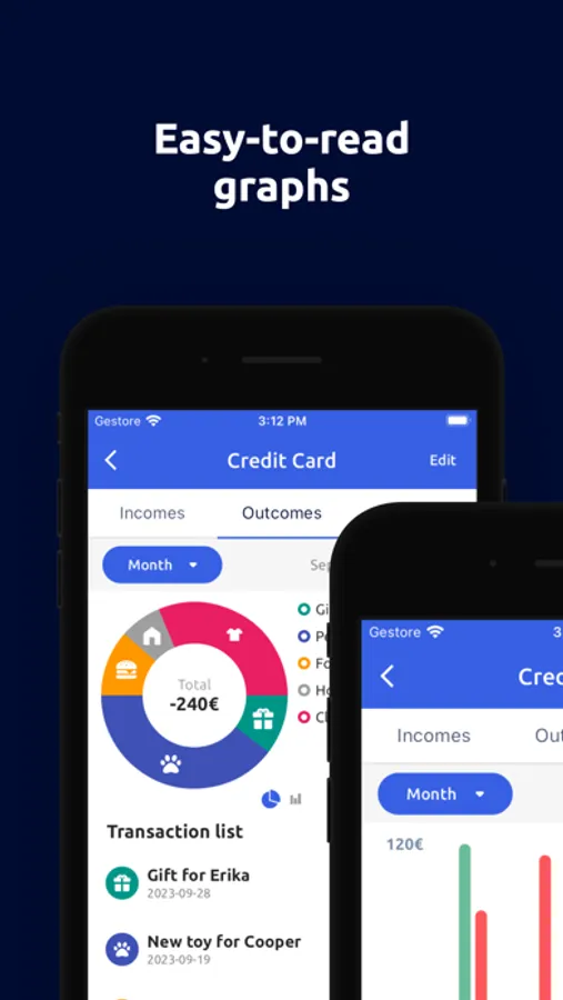 • Easy-to-Read Graphs: With Moneye's powerful graphing tools, you can easily visualize your spending habits.