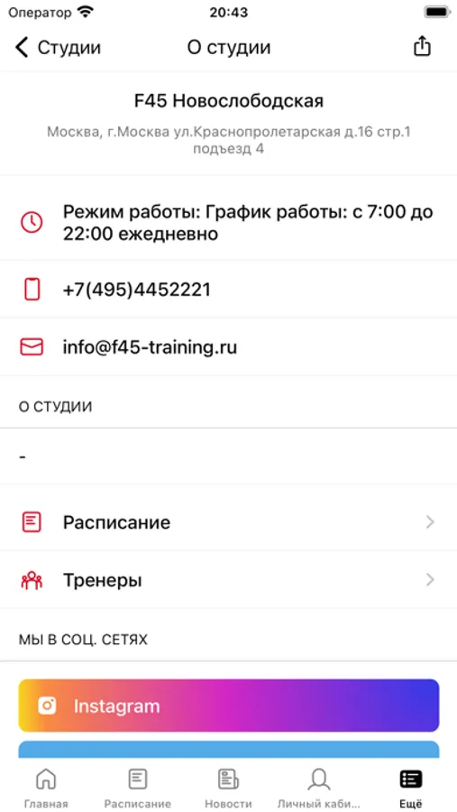 F45 - это фитнес-студии всемирно известного австралийского бренда в Москве. Тренировки F45 состоят из упражнений, которые имитируют или воссоздают наши повседневные движения. В процессе их выполнения работает все тело и активизируются разные группы мышц. Все упражнения выводятся на специальные экраны, а за правильностью их выполнения следят два профессиональных тренера. Регулярно посещая классы F45 и комбинируя силовые/кардио нагрузки, ты улучшишь свою форму, увеличишь силу и выносливость.