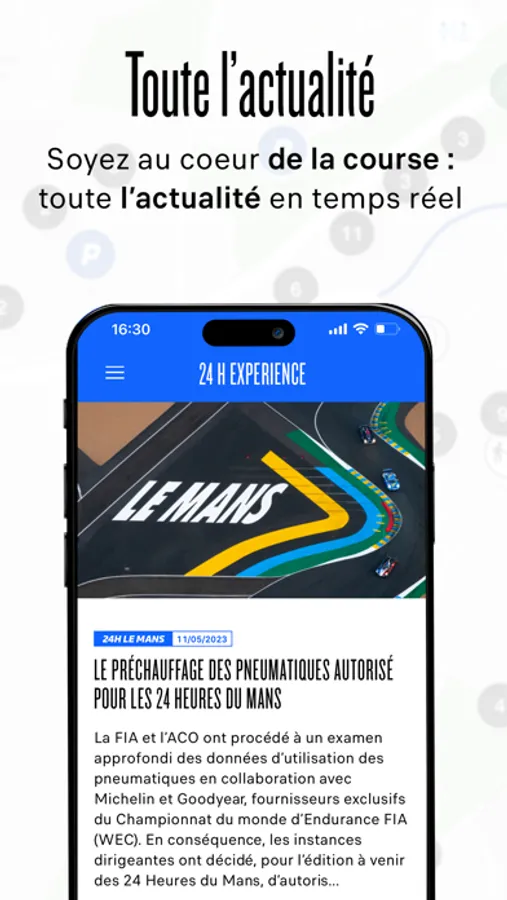2. Actualités en temps réel : Soyez au cœur de la course en suivant toutes les dernières actualités, les résultats et les classements des équipes et des pilotes tout au long de l'événement.