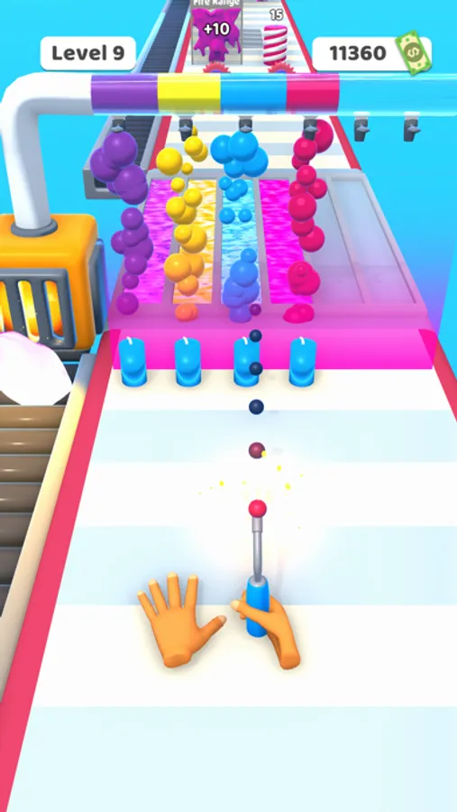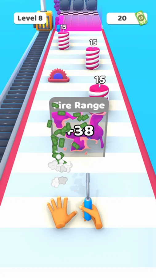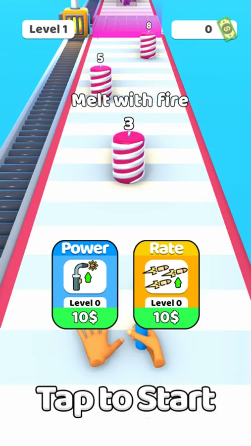 Use your fire gun and melt the candles on the platform. The more candles you can collect, the more layers you can make. Play more for more layers! Make candle art!