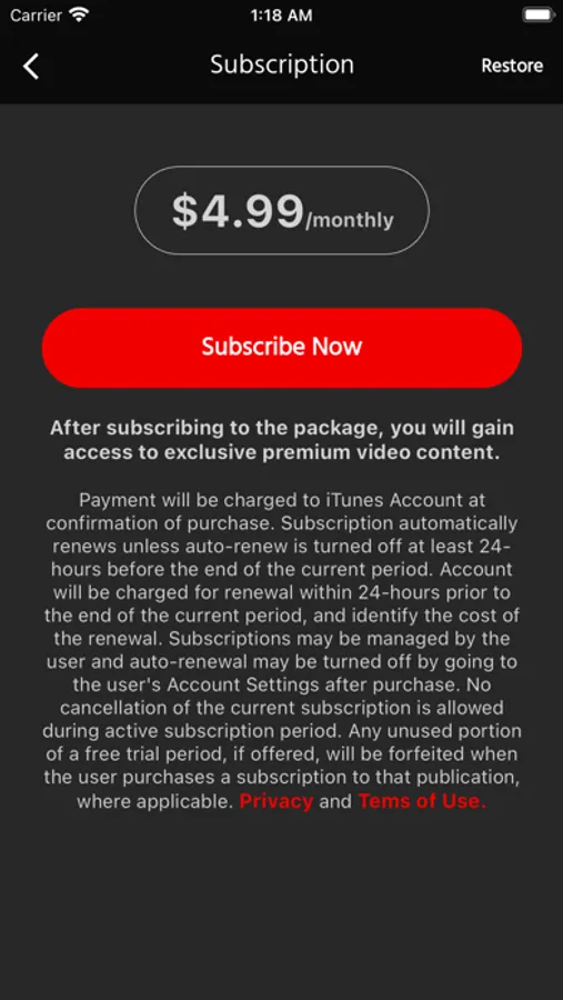 • Payment will be charged to iTunes Account at confirmation of purchase. Subscription automatically renews unless auto-renew is turned off at least 24-hours before the end of the current period.