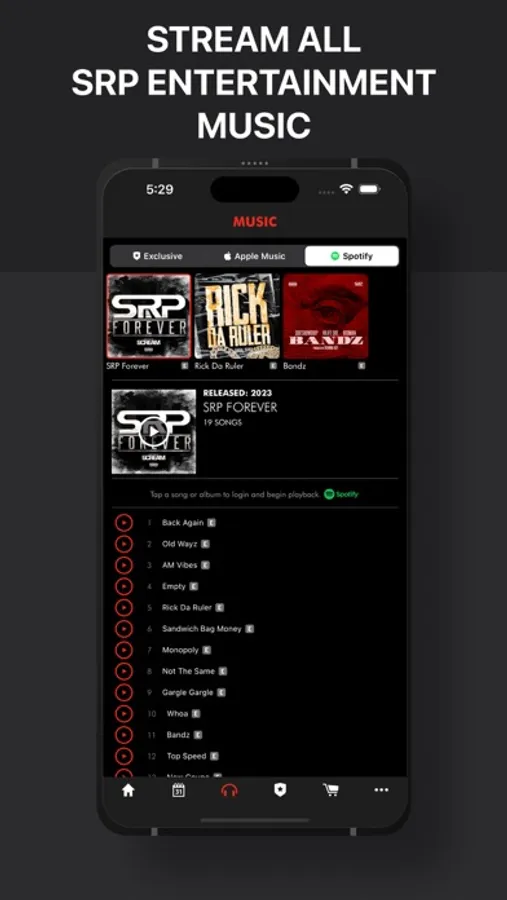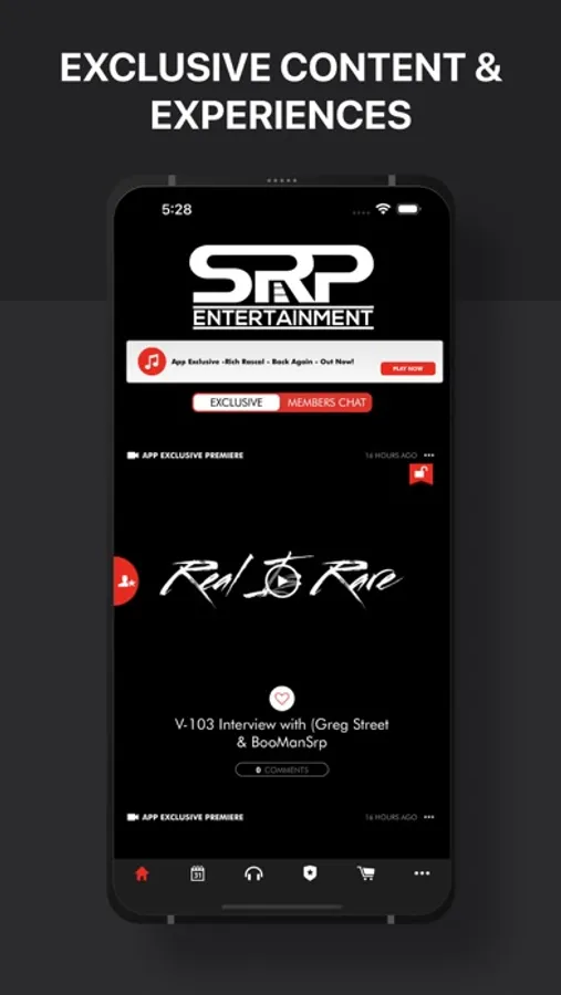 Get exclusive access to SRP Entertainment’s world as a Label, and Entertainment company every step of the way with a mixture of free and premium paid content offers and experiences only available in the Official App.